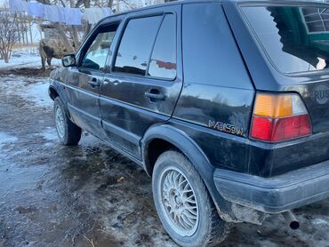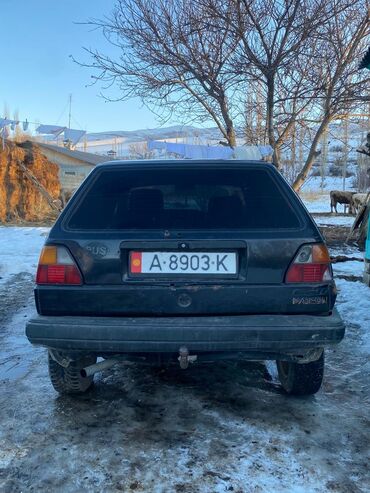 Интерьер просматривается через стекла: передние стеклоподъемники ручные, руль классический. Кузов окрашен в темный цвет, по бокам декоративная тонкая полоска. Автомобиль на киргизских номерных знаках.