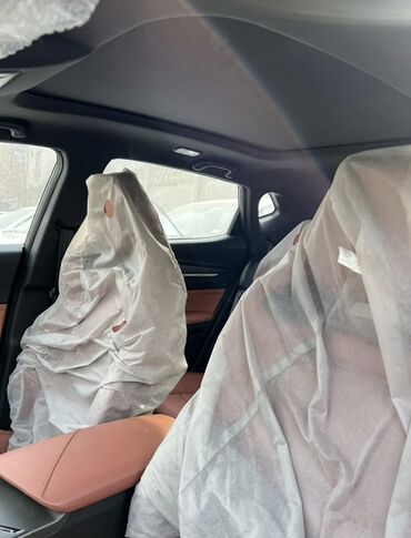 - Интерьер в богатой отделке: сиденья и подлокотники обтянуты кожей терракотового оттенка, контрастные вставки на дверях