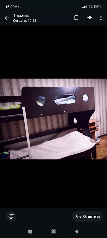 - Два спальных места одно над другим; верхний ярус с высоким защитным бортом с круглым и овальным смотровыми окнами.
