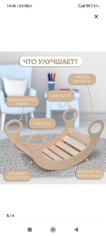 Подходит для дома, детской комнаты и игровой зоны. Компактно переворачивается: в одном положении — качалка, в другом — мостик/степ.