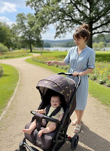 Универсальная прогулочная коляска Prima Dank, выполненная в темно-фиолетовом или темно-сером цвете с золотистым узором в виде корон. Оснащена регулируемым капюшоном, который обеспечивает защиту от солнца и ветра. Сиденье с мягкой обивкой и ремнями безопасности гарантирует комфорт и безопасность малыша. Удобная ручка и маневренные колеса делают коляску подходящей для ежедневных прогулок. Легкая и компактная конструкция удобна для транспортировки и хранения.