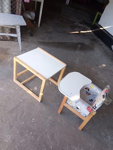 Компактный набор: высокий стульчик + в разборе низкий столик и детское кресло.