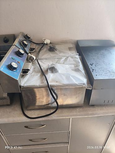 Электрическая профессиональная гриль-плита (плоская жарочная поверхность) + электрическая фритюрница