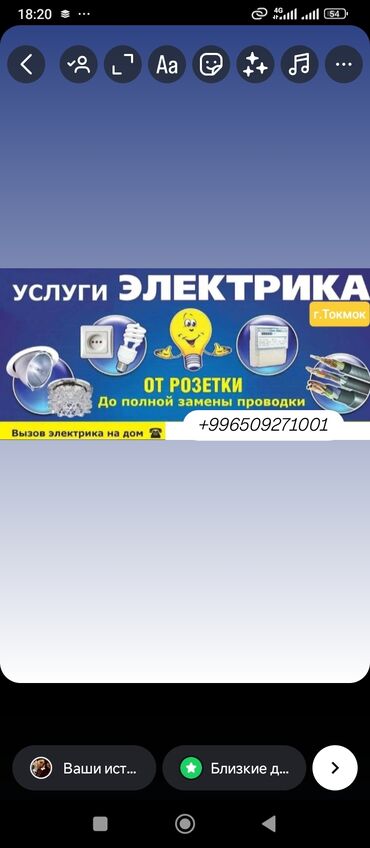 Уважаемые клиенты Кому нужен хороший электрик с оптом лет 15 можно обращайтесь.Урматуу клентер егер жакшы Электирик керек болсо кайрылыныздар кызматыныздарда мен Кутман