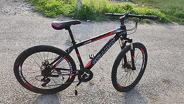 - Колеса 26" с широкими покрышками протекторного типа для уверенного сцепления на грунте и асфальте.