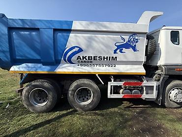- Трехосный самосвал 6x4 для строительных и карьерных работ.