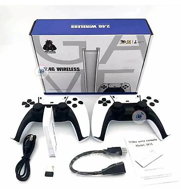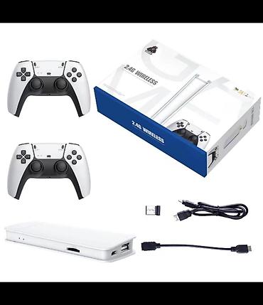 Компактная ретро-приставка с двумя беспроводными геймпадами 2.4 ГГц для игр на телевизоре или мониторе.