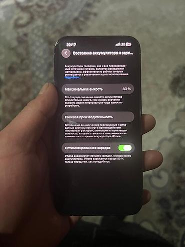 - Аккумулятор: максимальная ёмкость 83%, включена функция «Оптимизированная зарядка».