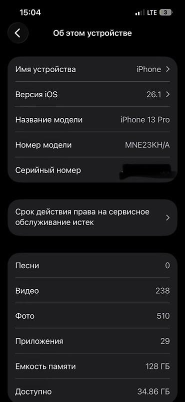 - Модель: iPhone 13 Pro (номер модели MNE23KH/A)