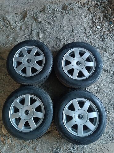 Комплект колес на литых дисках. - Количество: 4 шт. - Тип дисков: литые, 5‑спицевые, двухцветные (серебристый/черный), центральные колпачки установлены. - Посадочные параметры: 5 крепежных отв...