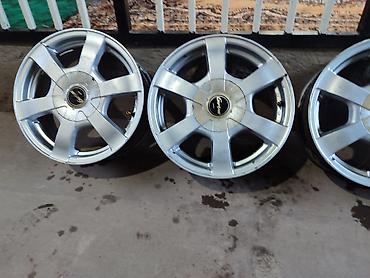 Комплект из 4 литых автомобильных дисков. Характеристики по фото: - Диаметр ориентировочно R15 - Посадочные отверстия 5-шпилечные (5х… PCD не указан) - Дизайн: 5‑спицевые, серебристое покрытие - Ц...