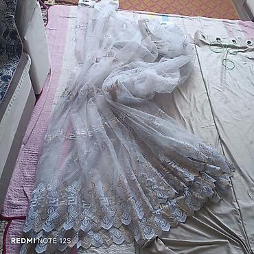 - Тюль: полупрозрачный белый с вышивкой, фигурный ажурный низ с орнаментом в бежево-белой гамме