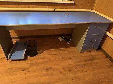 Письменный/офисный стол с тумбой и выдвижной полкой под клавиатуру.