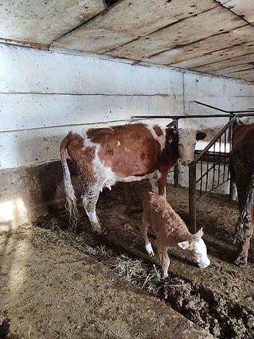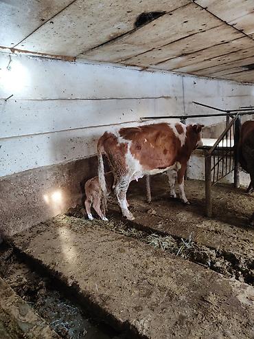 Продаю тёлку с телёнком 1 отёлам телёнок тёлочка Парода привозная с России Сементальская парода данный момент 10 литров малоко даёт рост в холке130+ осталные вопросы только звоните горо Кара Балта