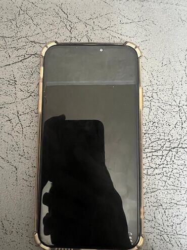 - На задней панели видны трещины стекла; логотип Apple по центру.
