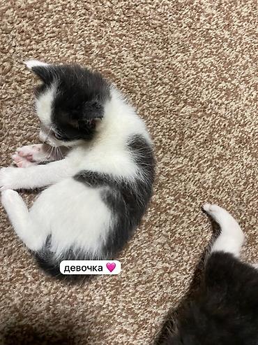 - девочка чёрно-белая с белыми отметинами на мордочке и лапках;
