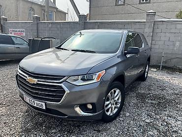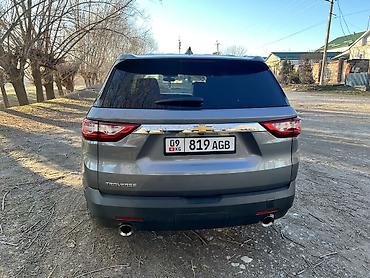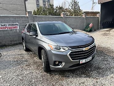Надежный семейный SUV с просторным салоном и современными системами комфорта и безопасности. Маркировка на багажной двери: Traverse. Регистрационные номера KG. Цвет: серый.