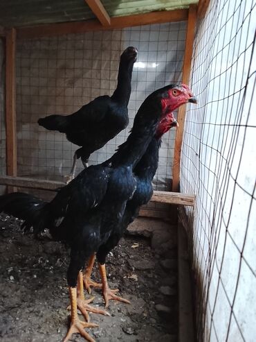 Молодняк кур породы типа азиль/шаамо (высокие боевые линии) Описание: - Окрас: преимущественно черный, голые красные лица, мощные желтые плюсны. - Телосложение: высокая посадка, длинная шея, широк...