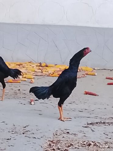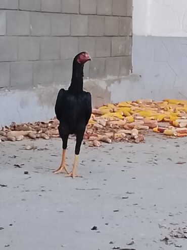 Петух породы (боеватого/высоконогого типа, похож на азиль/шамо). Окрас: черный с зелёным металлическим отливом, красное лицо и гребень. Строение: высокий рост, длинные ноги, крепкий корпус, шир...