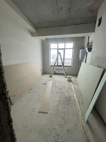 - В помещении выполнены: стяжка пола, черновая отделка стен (шпаклёвка под финиш), прокладка кабелей, частично установлены