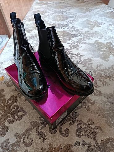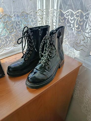 2) Ботинки на шнуровке из чёрного лакированного материала