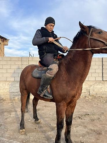 Бышты 3 жаш сатылат улагы баар Лошадь верховая, масть темно-гнедая. Крупная, хорошо сложенная, с выраженной мускулатурой и крепкими ногами. Высокая холка, ровная спина, глубокая грудь. Хвост и гр...