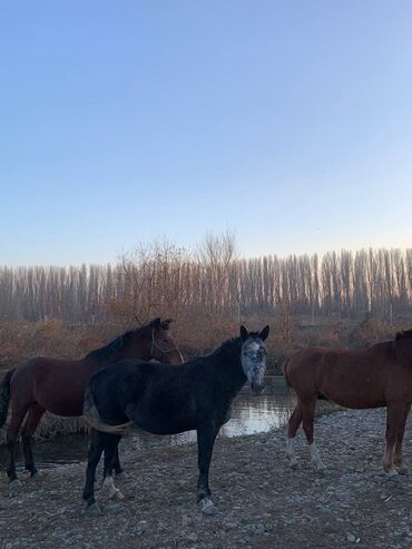 - На фото — табун верхового типа: гнедые и вороно-серый (с проседью) масти.