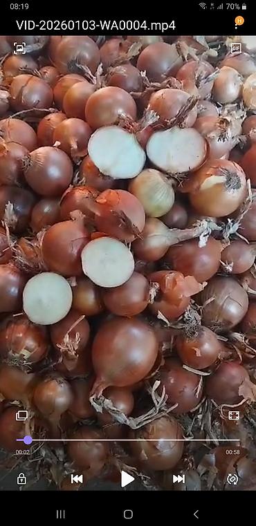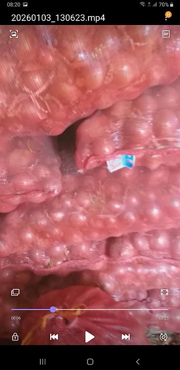 Репчатый лук в сетчатых мешках - Калибр: средний/крупный, выровненные округлые луковицы золотисто‑коричневого цвета. - Упаковка: прочные красные сетки с ручками-завязками; мешки уложены на поддоны...
