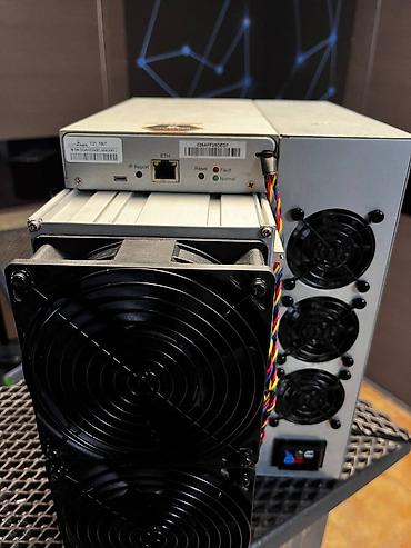 - Bitmain Antminer S19/S19j (на фото) — SHA-256, Ethernet, индикаторы Fault/Normal, кнопка Reset, разъём IP Report, слот SD. Двухвентиляторное охлаждение спереди и сзади, встроенный БП, силовые разъёмы IEC C14. Подходит для добычи Bitcoin и других монет на алгоритме SHA-256.