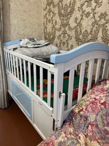 Детская кроватка . Сеткасын жамап алсанар эле состояние идеал болуп калат. 4 колесосу иштейт . Чехол чечилет. 4 уровень бар . Самовывоз Тц Ала арча или платная Доставка