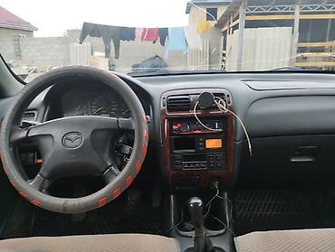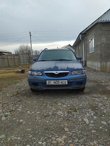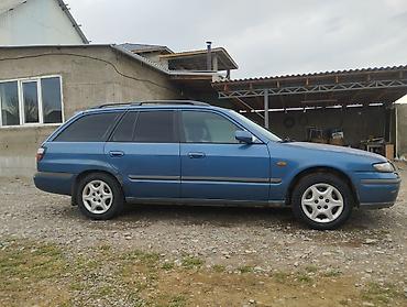 Mazda 626 универсал (GF) — синий цвет кузова, киргизские номера G8 605 ACO. Кузов универсал с рейлингами на крыше. Литые 15-дюймовые диски, тонированные задние стекла. Передние противотуманные фары встроены в бампер. Задняя дверь с дворником и омывателем.