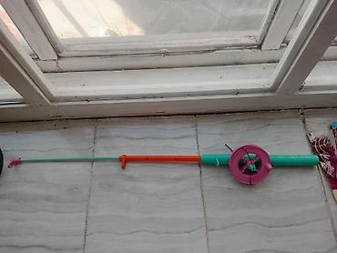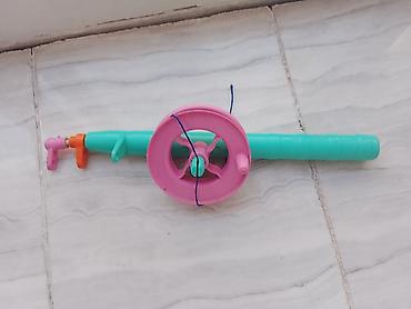 - Леска уже установлена; на кончике удилища — петля/крепление для игрушечных приманок или магнитных рыбок.