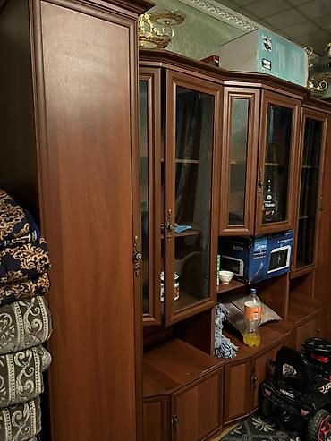 Классическая модульная стенка для гостиной из ЛДСП под дерево (теплый орех/махонь).Срочно Токмок
