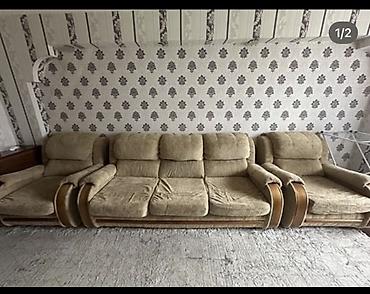 Мягкий мебельный комплект: диван трех местный , два кресла и диван раскладной Продается : 4 предмета , один большой диван , второй раскладной , и 2 кресла Состояние : отличное б/у Цена: 13.000 со...