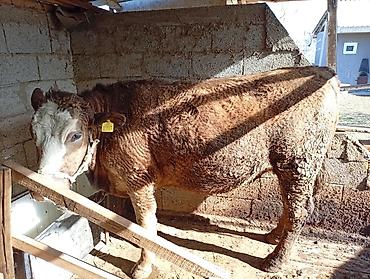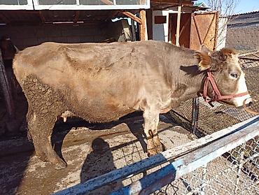 Дойная корова, рогатая, масть рыже-коричневая. На ушах бирки с идентификационными номерами. Хорошо развитое вымя, удобные соски для ручной дойки. Крепкая конституция, широкий корпус, ровная спина. ...