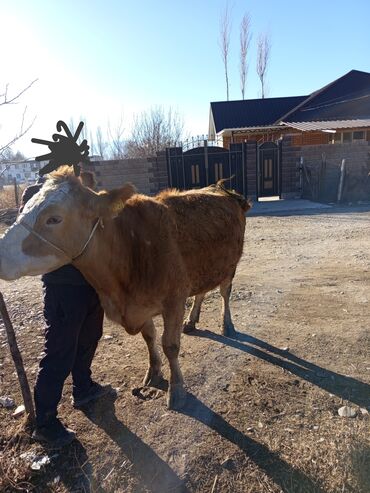 кунажын музосу менен - Взрослое животное, рогатый скот молочно-мясного направления. - Окрас: светло-коричневый с белыми отметинами на ногах и ушах. - Уши с биркой-идентификатором. - Сдерживается на...