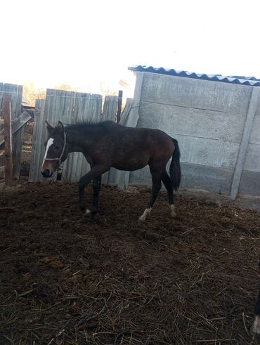- Масть: темно-гнедая, отметины — белые «носки» на ногах и проточины/звездочки на лбу.