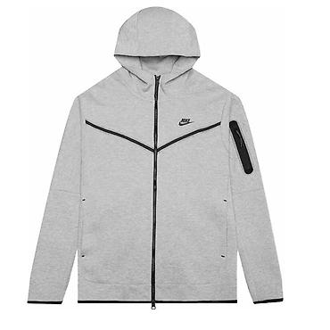 Nike Tech Fleece – мужская худи/олимпийка с капюшоном на молнии, цвет серый меланж.