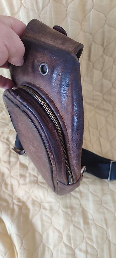 Практичный городской слинг из толстой кожи: носится свободно, оставляет руки свободными, хорошо держит форму. Стиль «винтаж», тёплый коричневый оттенок.