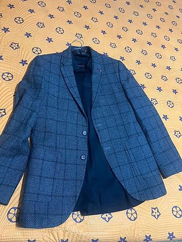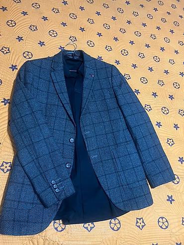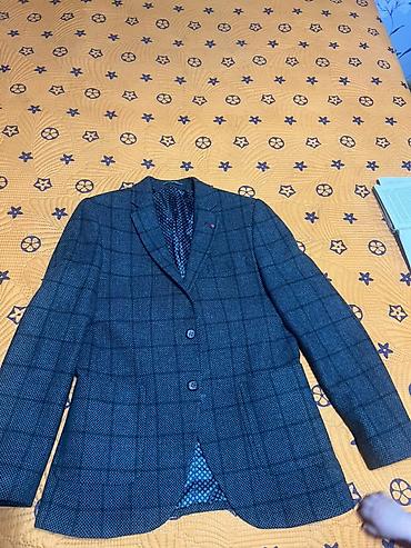 Мужской пиджак темно‑синего цвета с микропринтом и клеткой windowpane.