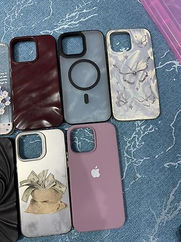 Набор чехлов для iPhone14 про макс (модуль с крупным вырезом под камеру). Разные дизайны и материалы, часть моделей с кольцом под MagSafe.