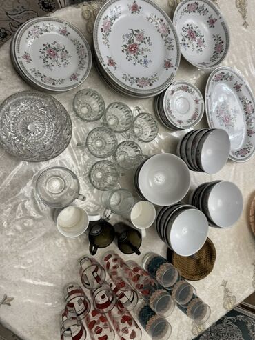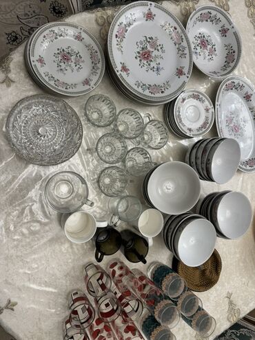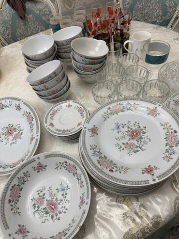 Стиль: классический, с нежным цветочным орнаментом, подходит для повседневной сервировки и праздничного стола. Материалы: фарфор/керамика и прозрачное стекло. Универсальный набор для семьи и гостей: первые/вторые блюда, салаты, десерты и напитки.