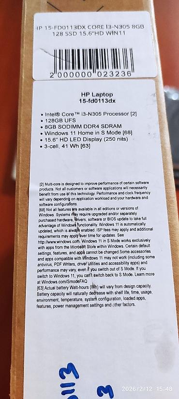 HP Laptop 15-fd0113dx (15.6") Новое. Комплектация на фото: ноутбук HP