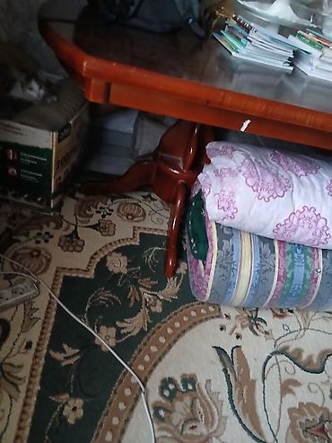 Обеденный/гостиной стол из массива (дерево, тон «тёмный орех»).