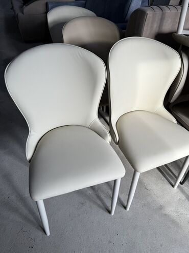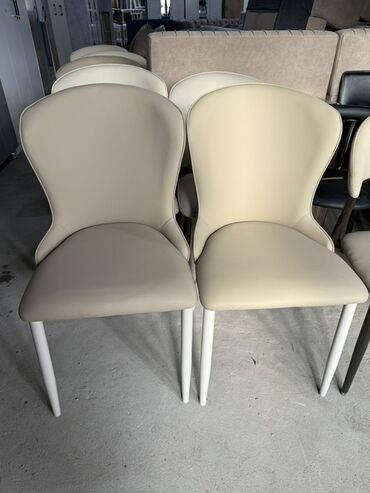 Стильные обеденные стулья в нейтральных тона.
