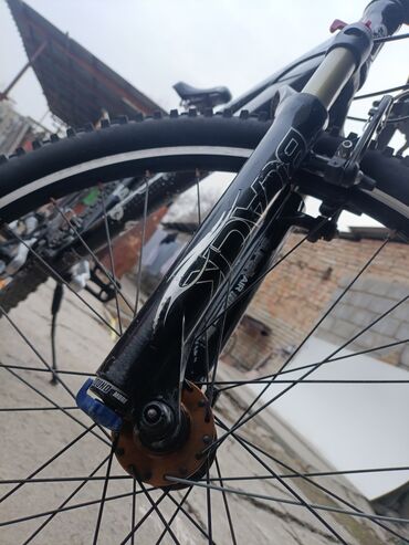Горный велосипед PINK (бренд на раме) с колесами 26". цена 5000 сом окончательно!!! Основные характеристики: - Легкая рама хардтейл, цвет: черный с синими/голубыми вставками. - Амортизационная вил...