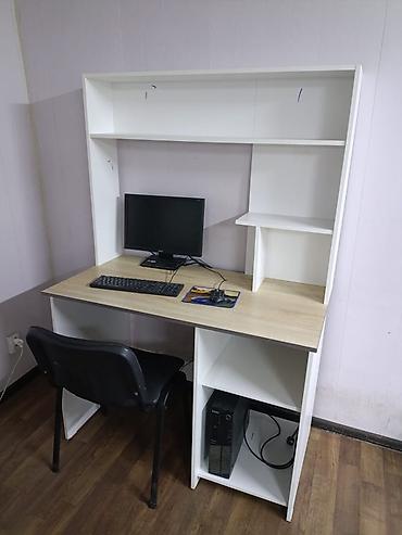 Столы и полки для компьютеров , два стола и две полки , размер стол 85/100 см, ножки железные ,б/у в хорошем состоянии . Все за 10 тыс. сом . Один стол с полками 5 тыс
