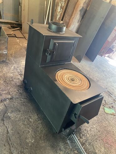 Металлический угольная печь с варочной поверхностью. Печь имеет три