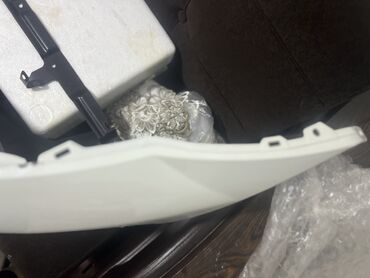 - Конфигурация: центральная решетка-накладка черного цвета, технологические отверстия под крепеж, площадки под противотуманные фары/заглушки по бокам, верхние точки крепления с клипсами.