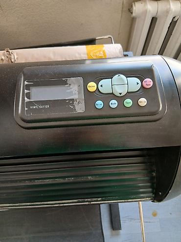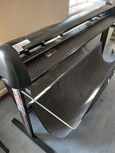 Режущий плоттер (vinyl cutter) формата около 1200–1350 мм на напольной стойке. Характеристики и особенности по фото: - Предназначен для резки самоклеящейся виниловой пленки, термопленки, картона и...